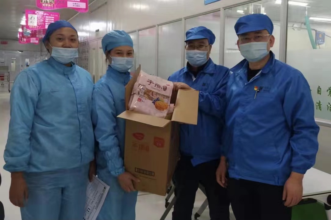 為避免人員減少時空交集幾率,后勤部為員工訂餐,送到生產車間供員工分散取用。為改善伙食質量,精密公司自4月3日起每天下午三點為員工提供點心,讓員工感受到公司的溫暖。