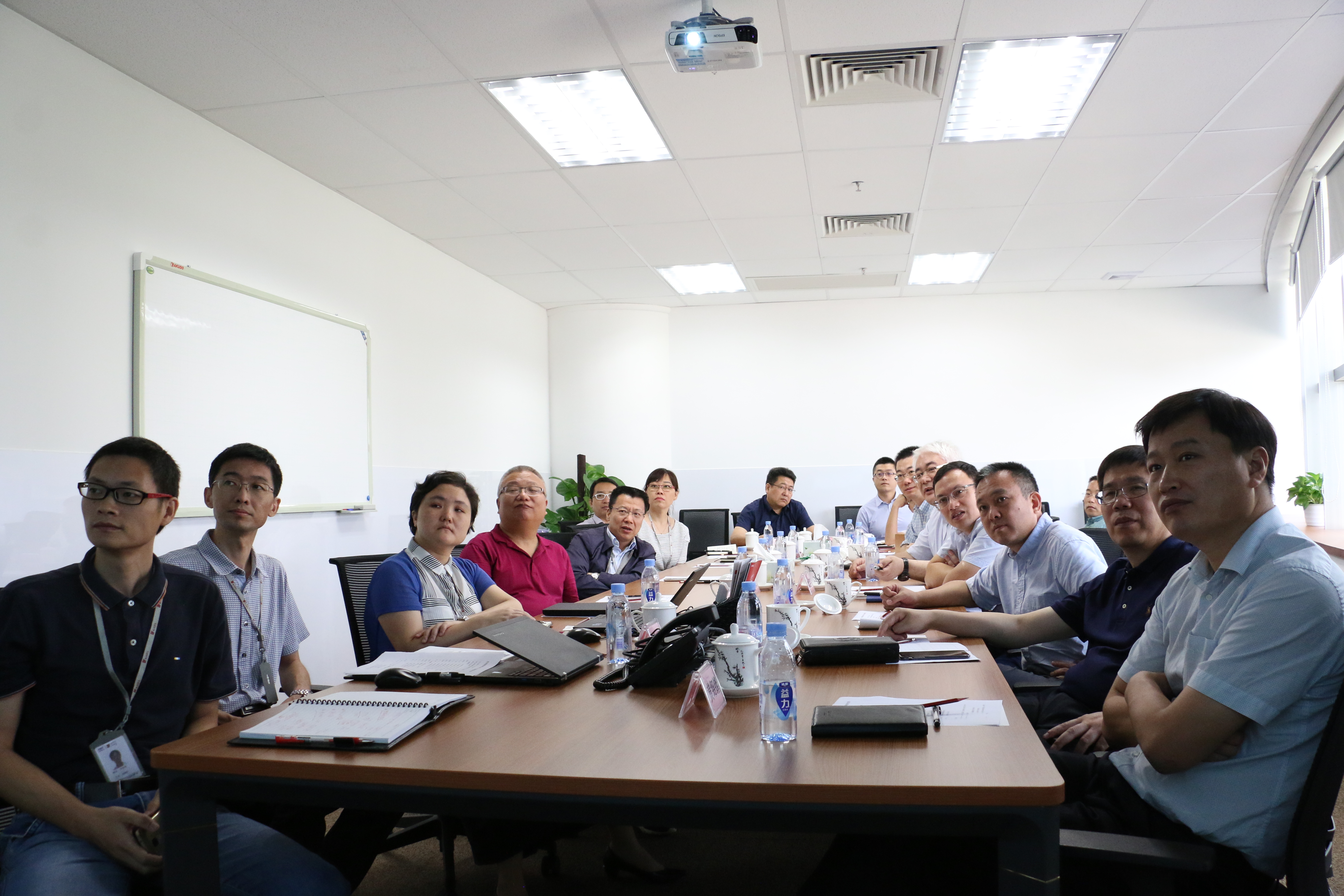 深科技董事會辦公室副總監李麗杰、自動化設備事業部高級經理陳俊光,南京熊貓副總經理胡回春、邵波、部分部門和子公司負責人一同交流學習。